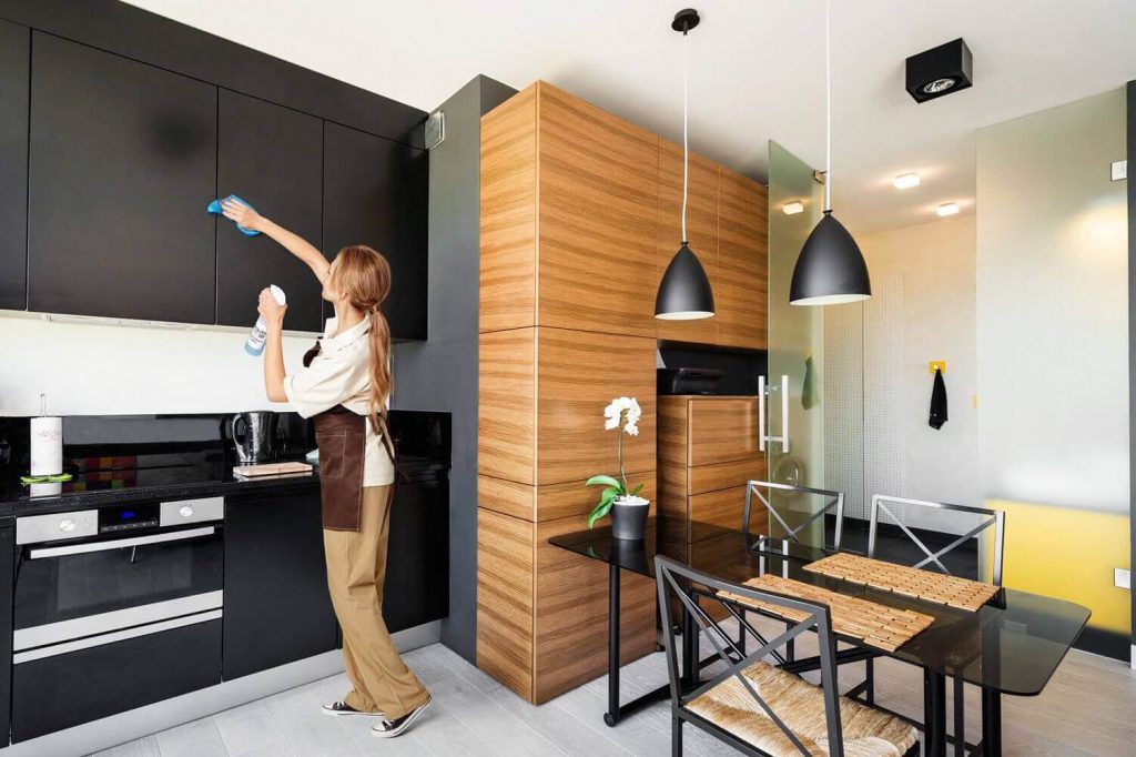- производим влажную очистку мебели на кухне (только моющие поверхности);