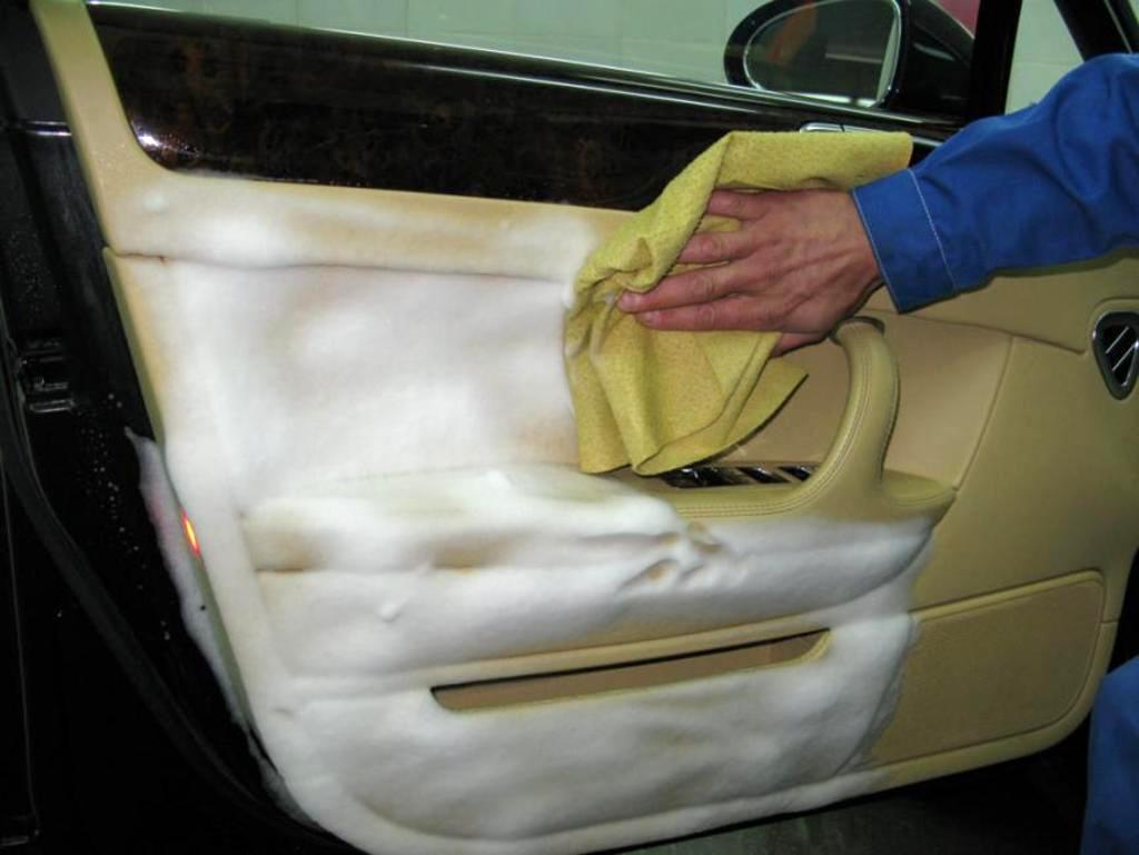 На отдельные элементы салона наносится активная пена, которая способствует устранению загрязнений. Затем она удаляется с помощью мощного пылесоса, способного вытянуть загрязнение даже из очень ворсистого ковра.